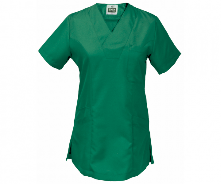 Naisten lyhythihainen toimipaikkapusero. Linjattu malli antaa lisäväljyyttä lantiolle ja istuvuutta hartialinjaan, luoden ryhdikkään ja naisellisen kokonaisuuden.